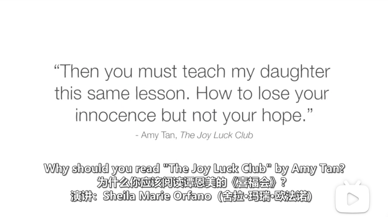 Have you watched the movie discussed in our iProduce section of Unit3? How do you like this movie or book? Can you share your comment below? You can find in bilibili a TedEd introduction to The Joy Luck Club (喜福会)