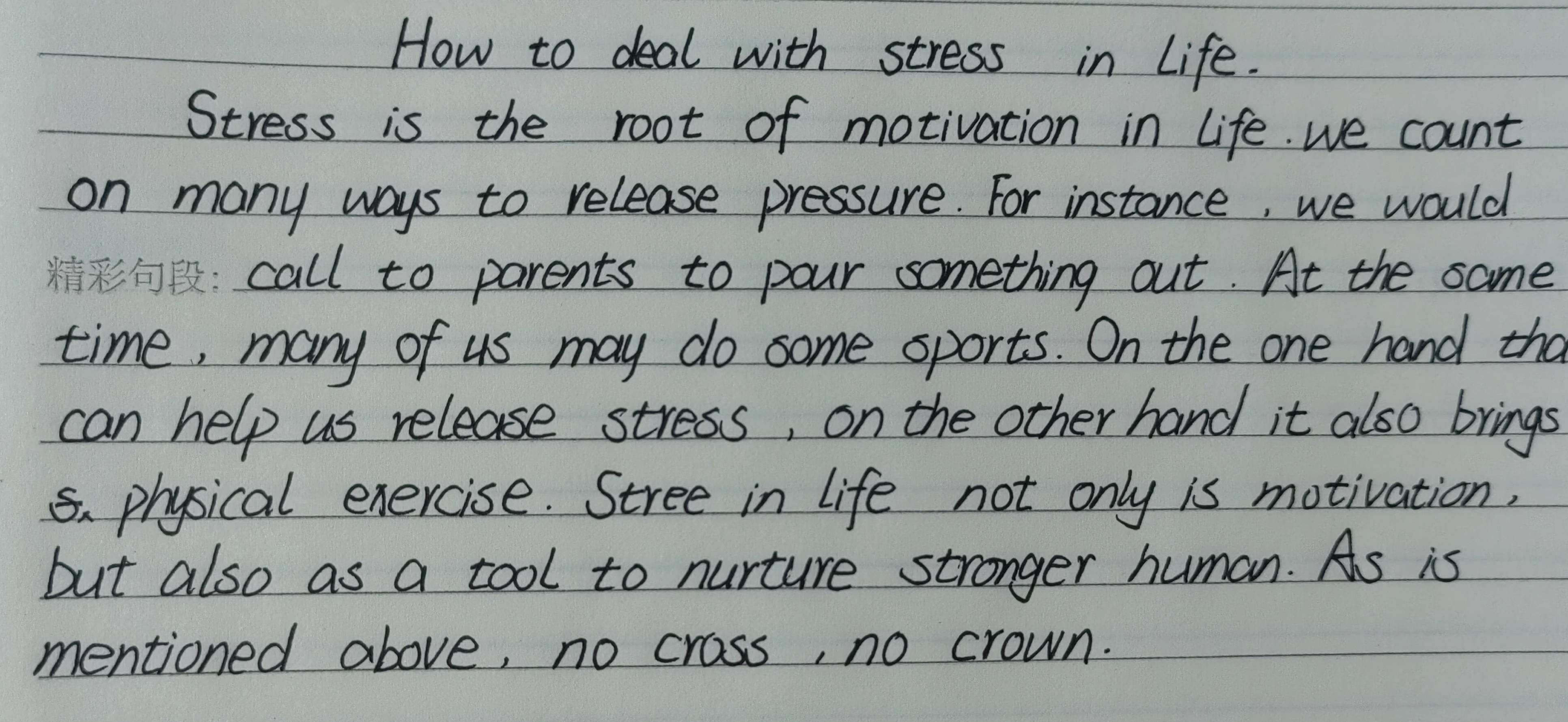 Very good! You use some sentence patterns, and your paragraph is clearly structured!