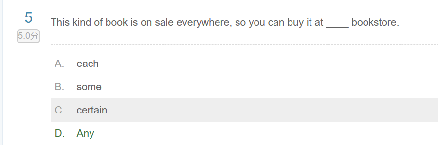 选项设置是否有问题,D选项any 的首字母好像不能大写