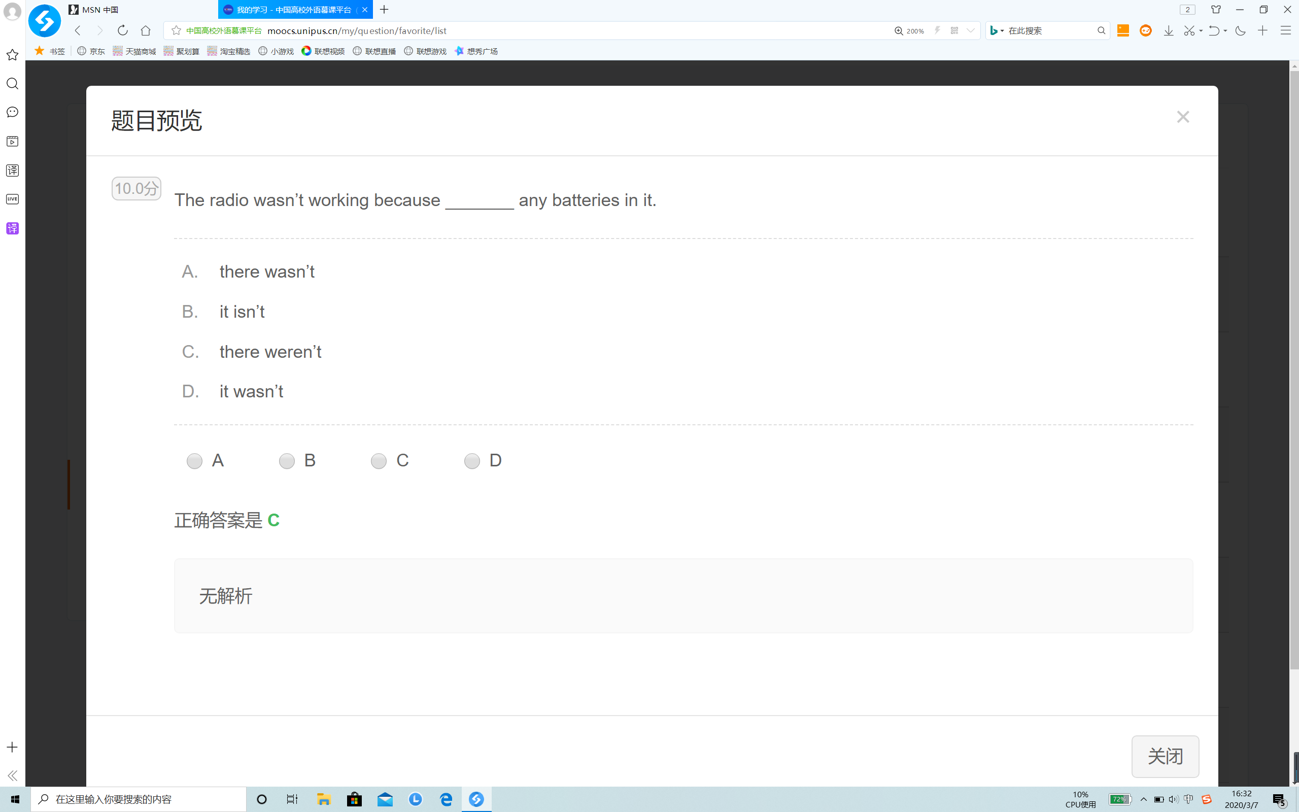 there be 句型中be的单复数取决于后面所加名词的单复数,batteries是复数,所以用were,答案C。