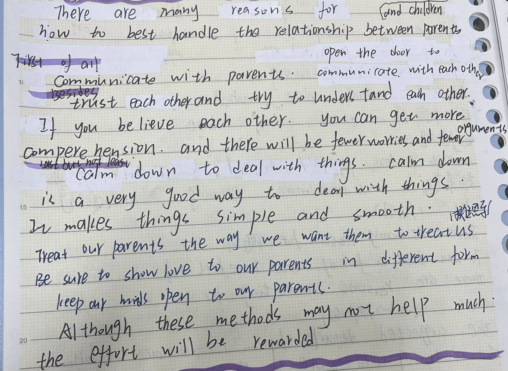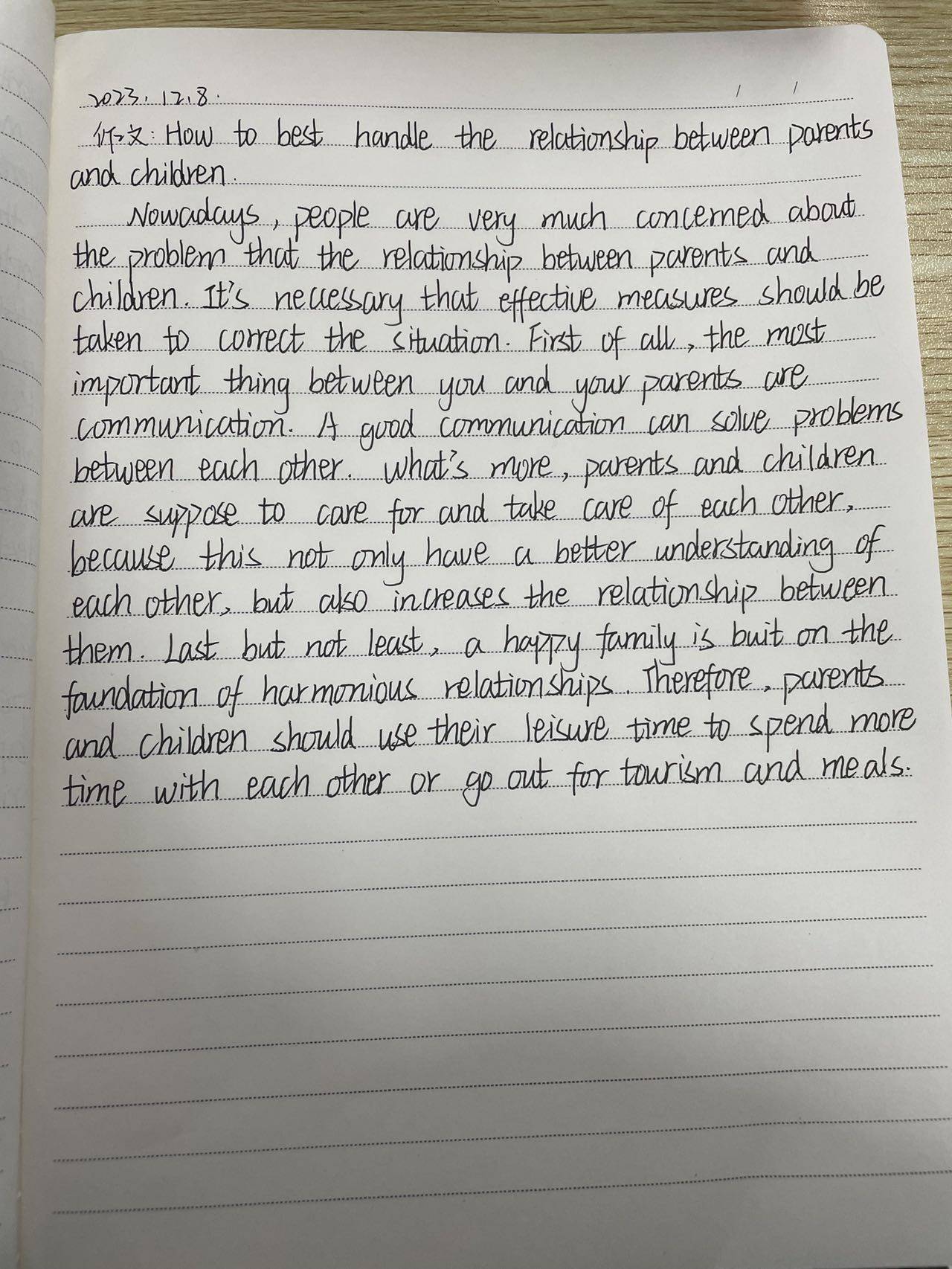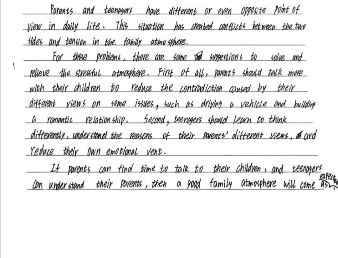 语法错误较少,很棒的一篇作文。简直把if parents can find time to...改成if parents get round to...