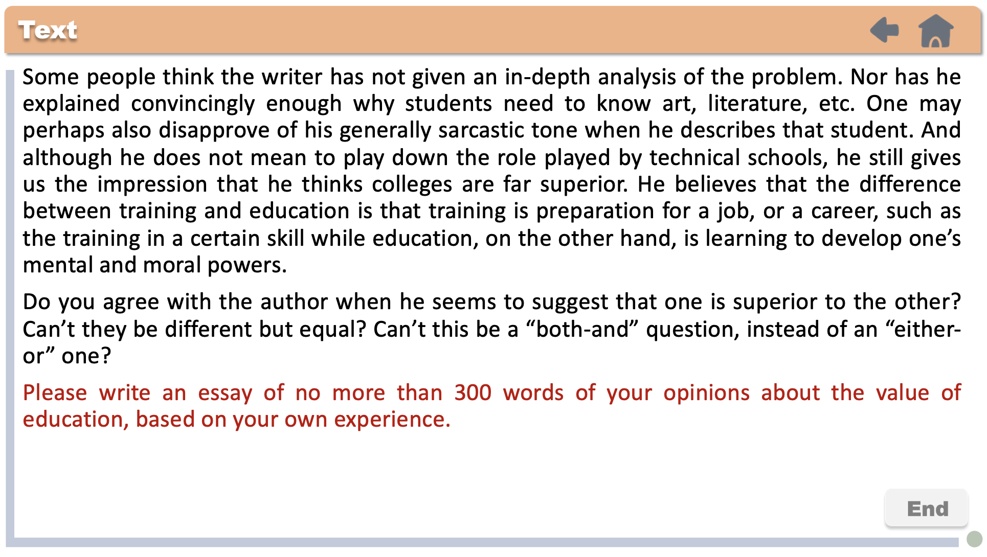 Adentually,the value of education is not itself,but whether can teach one to live rather making a living.