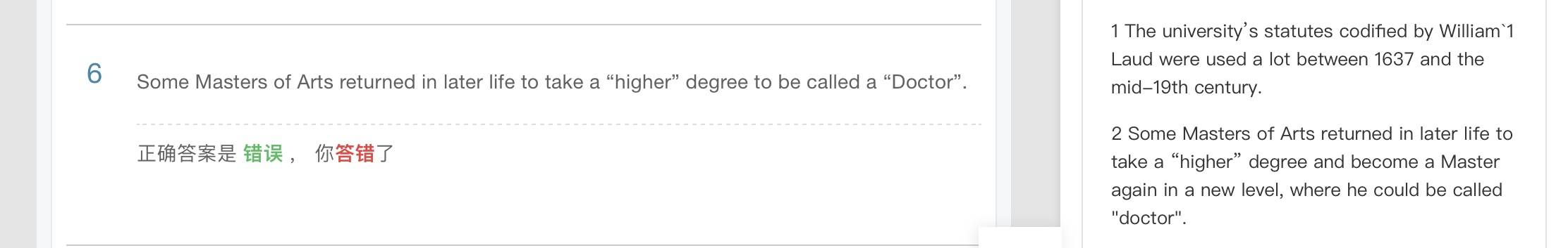 In my opinion, according to the video in my memory, it's said that in some cases, a Master of Arts returned later... I'm not sure if it's the difference I marked in red, so the sentence is false.surprise You may find details of this sentence in the video again.