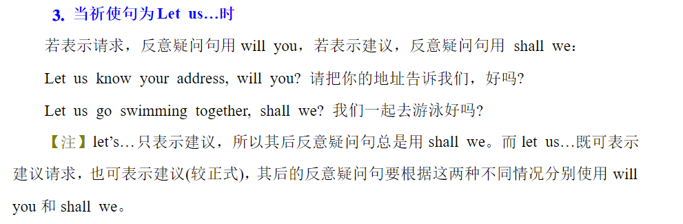 eg:Let us go.让我们走吧=please allow us to go(请求对方让我们走而不是我们和对方一起走)